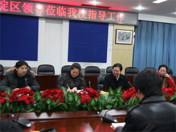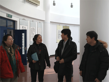 2010年12月14日上午,由海淀区教委体美科派出的金帆书画院承办校检查验收工作组来到bg真人娱乐,对附中承办金帆书画院工作开展情况进行调研。附中校长王殿军、党委书记方妍、副校长杜毓贞等校领导与全体美术教师一起接待了工作组。工作组在认真听取了校领导的工作汇报后,逐一检查了bg真人娱乐根据《海淀区学生金帆书画院评价表》要求所准备的相关材料,并实地考查了学校硬件设施。bg真人娱乐承办金帆书画院所取得的成绩赢得了工作组成员们的充分肯定。