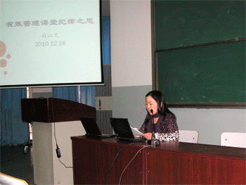 研讨会围绕的主题词是“有效”。杜毓贞校长在开场发言中,介绍了召开初中全体教师教育教学管理研讨会的目的,强调了班级管理在教育教学中的重要地位,希望能够促进年轻教师的成长和专业化发展。接下来,白沁文、郎艳和罗霞三位班主任老师分别从“有效地课堂管理”、“有效地处理突发事件”和“有效地与学生和家长沟通”方面,谈她们在工作实际中的具体做法,并给老师们提供了很多行之有效的方法。最后,bg真人娱乐法律顾问孙雅申律师通过案例的形式向老师们介绍了一些校园安全事故,并介绍了一些具体的处理方法,对老师们也是很好的普法教育,让教师们更加知法、懂法、守法和用法。