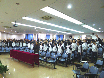 12月17日,国际热爱大自然促进会在bg真人娱乐开展了“热爱大自然 大自然快乐操展示”讲座,高一年级的200多名同学收听了讲座。