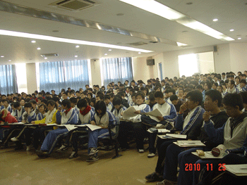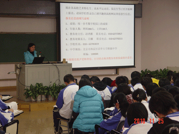 北京市2011年普通高等学校招生报名工作将于2010年12月进行,为了保证高三学生高考报名工作顺利完成,2010年11月25日,bg真人试玩教务处、高三年级组联合组织召开高考报名工作布置大会。教务主任赵鸿雁、高三年级组长徐海鹰、尹粉玉、教务老师肖娜、高三各班班主任以及全体高三学生参加会议。高三年级组长徐海鹰主持会议。