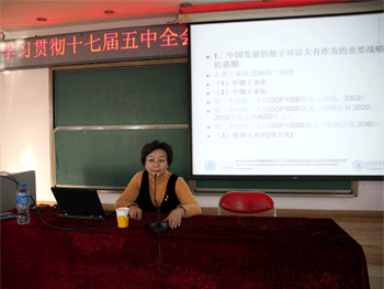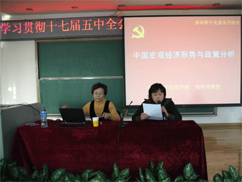 12月2日下午,bg真人娱乐党委在综合楼大会议室举行学习贯彻十七届五中全会精神专场报告会。邀请清华大学经管学院教授刘玲玲为全体党员、积极分子以及中学生业余党校学员作了题为《当前中国宏观经济热点问题》的报告。刘教授结合当前经济形势的实际特点,运用大量的事例给与会人员解读《“十二五”规划建议》提出的一系列战略规划、部署、举措的原因及意义。党员们对刘教授深入浅出的报告反响热烈,普遍反映报告有助于自己正确深入的领会十七届五中全会的精神和《“十二五”规划建议》的内容。