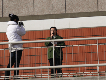 指导此次疏散演习的领导 主管德育副校长杜毓贞总结演习情况