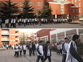 此次演习高中教学楼疏散用时2分58秒;初中教学楼疏散用时4分17秒;国际部教学楼疏散用时4分43秒。演习过程安全、有序,达到了预期目的。