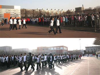 2010年12月2日上午9:30第二节课下课后的课间操时间,bg真人娱乐进行了教学场所的消防疏散演习。此次演习的目的是进一步提高师生消防安全意识,让全体同学了解、熟悉所在班级的逃生路线,危急时刻能迅速、安全地撤离教学楼。高中、初中及国际部共有2984位同学参加了演习。演习过程中所有班主任和第二节上课的老师全程引导学生撤离,在三座教学楼的每个楼梯及每层的拐弯处均有见习班主任和任课老师负责疏导学生。全体同学撤离到操场后,主管德育副校长杜毓贞作了演习总结。
