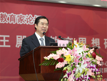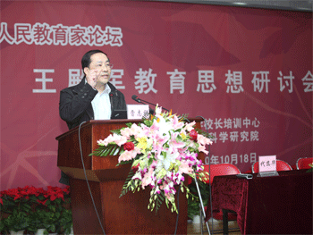 王殿军校长的发言得到与会领导充分肯定,教育部基础教育课程教材发展中心常务副主任曹志祥、教育部中学校长培训中心戚业国教授等人对王校长的发言作了精彩的点评,bg真人试玩的校友代表、学生代表和家长代表也先后谈了自己的看法。最后,教育部中学校长培训中心主任陈玉琨为大会作了总结,他认为,王殿军校长的这个发言是朴实的,也是带上清华深深烙印的,“这个基础上形成的一些人才培养的做法、途径、手段,对提升所有学生的领导才能,都有非常重要的意义”。他指出,王殿军校长提出的思想是具有时代性、针对性的,认为现在这个时候提出英才培养的问题,领袖培养的问题是很有意义的。最后,他希望,研讨会要能够深刻地反映我们的教育和我们的学校所面临的一些深层次的问题,指出只有这样,才会有思想的进步,思想的发展。