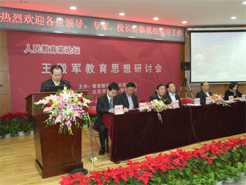 研讨会由教育部中学校长培训中心常务副主任代蕊华教授主持。代教授首先介绍了出席会议的领导和专家,然后介绍了教育部中学校长培训中心开办优秀中学校长高级研究班的目的以及这次研讨会的背景,然后由北京市教育科学院副院长张铁道先生和市教委基教处的郑登文先生分别致词。二位领导从不同的角度提出了对研究班的期许,同时预祝这次研讨会成功。