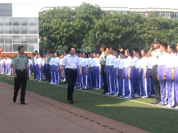 8月25~29日,bg真人娱乐组织初10级新生在校内举行了为期五天的军训生活。此次军训,除了严格的军事训练外,还安排了一些重要活动,如:军训开营式、入学教育、观看残疾人演出、军歌比赛、军训闭营式等等,并设立了集体奖项和个人奖项。德育处还召开了新生家长会,上了家长学校的第一课。目的是通过家校的合作,让学生家长了解学校的办学理念,了解学校教育教学的具体情况,关注学校的发展。这次军训得到了中央警卫团四大队领导的大力支持,他们派出了高素质的官兵,制定了周密的训练计划,保证了军训的顺利进行。