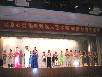 北京心灵呼唤残疾人艺术团来校访问演出 军训闭营式上王殿军校长检阅各班方阵
