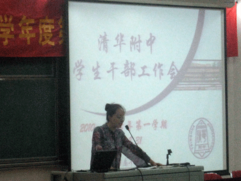 辛颖副主任结合学校发展规划,以学生发展为主题对学生干部提出了几点希望。学生会主席朱正人同学和副主席夏天同学分别向同学们介绍了团委学生会工作计划和校园常规管理。会后,德育处和团委老师就具体工作进行了布置落实。
