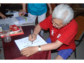 讲座现场 清华大学人文学院78岁高龄的魏宏森教授题词