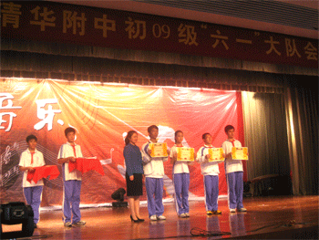 方妍书记为初09级优秀中队颁奖 杜毓贞副校长为初08级甲级团支部颁奖