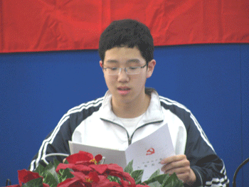 6月10日下午,bg真人娱乐语文外语和高三联合党支部召开高0704班学生何仕同学的党员发展大会。发展大会由语外支部书记赵妍老师主持。bg真人娱乐党委书记方妍、副书记周兆玉、校长王殿军、副校长杜毓贞等校领导,语文外语支部的23名党员,高三年级的13名教师党员,高三年级的任课老师代表及全体学生入党积极分子参加了会议。