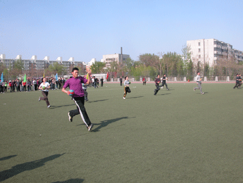 在学生比赛项目全部结束后,附中工会组织了一场教职工趣味“珍珠球接力”比赛。同学们热情的为他们欢呼,场面热烈、壮观。闭幕式上,表彰了在入场式、广播操、文明观众、比赛等方面评出的集体奖,并由校领导为获奖班级颁发奖状。