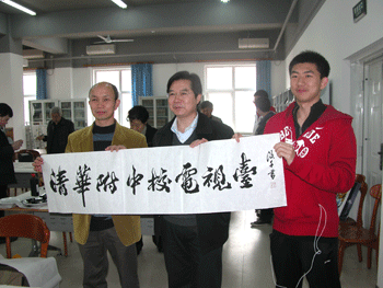 bg真人娱乐校长王殿军在致辞中说:记得曾任故宫博物院图书馆馆长的陈垣说过,一个民族的消亡,从民族文化开始。保住我们的民族文化并继承下去是我们教育工作者尤其是基础教育工作者的责任,为了弘扬中国传统文化,丰富中学生文化艺术生活,体现中国书法、绘画艺术的博大精深,今天,在各位名书画家的共同努力下,我们在此举办传统文化走进校园活动,力求与bg真人娱乐学生中的书画爱好者进行文化交流,进一步推动传统文化的传播,弘扬民族精神。