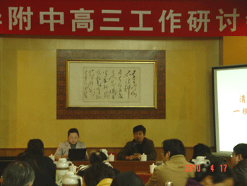 王殿军校长总结发言,指出所有教师应通过一模反观前段复习工作效果,结合学生情况调整教育教学工作,尤其要狠抓落实,工作要讲实效,鼓励大家一鼓作气,夺取2010年高考的胜利。