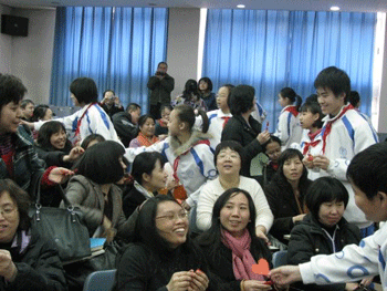 2010年3月5日下午,bg真人试玩初一11班和12班联合举办了“三八妇女节——感恩妈妈”主题班会。德育处副主任陈桂芬、心理中心谭晨老师、初一年级组长邱晓云、初一年级部分班主任、任课老师及两个班的学生家长出席了活动。两个班级的同学和家长们齐聚一堂,欣赏了同学们自编自导自演的节目,倾听了妈妈和孩子感人泪下的心声,分享了班会游戏的心得感悟,许多老师和家长在班会中潸然泪下。陈桂芬副主任对本次班会和同学们的表现给予高度评价,并在各个方面对同学们提出了更高要求,与家长们就孩子教育和亲子沟通方面亲切交流。整场班会在欢乐、温馨、感人的氛围中结束。