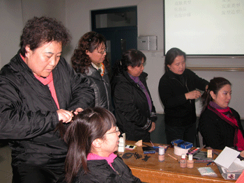 今年是“三·八”国际劳动妇女节100周年,为了帮助广大女教师们塑造更美丽的形象,2010年3月8日下午,bg真人娱乐工会邀请清华大学美术学院染织服装系李薇教授来校为女教工们做了题为《人物整体形象设计》报告会,并以听报告的女教师为模特,现场进行了化妆、发型演示。