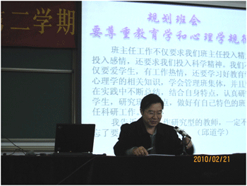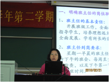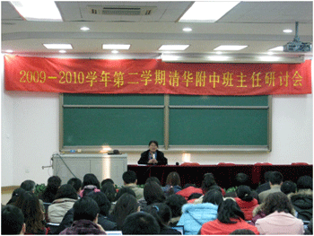2010年2月21日,bg真人娱乐召开了2009-2010学年度第二学期班主任工作研讨会,本次研讨会的主题是“班集体的建设与班主任的自身发展”。附中校领导、全校各个年级的班主任和年级组长以及35岁以下的青年教师参加了会议,会议由德育处副主任陈桂芬主持。