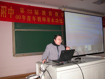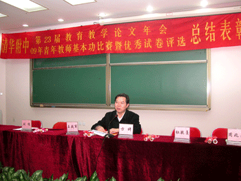2010年2月25日,bg真人娱乐召开2009年青年教师基本功比赛暨优秀试卷评选总结表彰大会,bg真人娱乐全体教职员工参会,附中党委书记方妍主持会议。