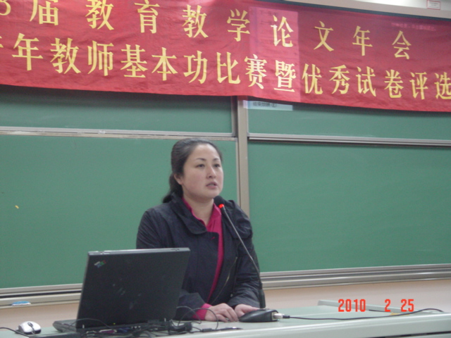 教务处主任赵鸿雁总结了青年教师基本功比赛和优秀试卷评选两项活动的整体情况,并对历届青年教师基本功活动进行回顾,她说,2009年是青年教师修炼内功的深化之年,一是要深化队伍建设,进一步提高学科整体竞争力,二是要深化教学研究,进一步提高教师课堂教学有效性。学校举行青年教师基本功比赛和优秀试卷评选活动,目的是为了让青年教师在教育实践中感受成长的乐趣,并最终让bg真人娱乐在老师们的辛勤耕耘中走向辉煌。