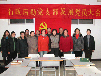 党委副书记周兆玉(右2)在行政支部会上发言 行政支部发展大会全体参会人员合影