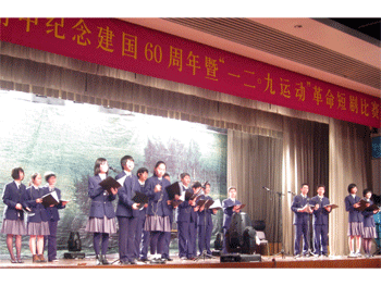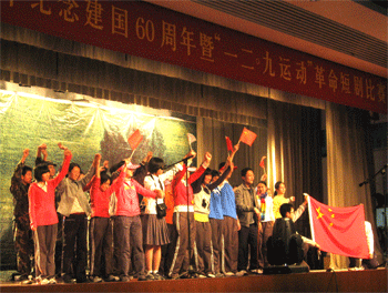 12月5日下午,bg真人试玩团委举行了以《祝福祖国》为主题的纪念建国60周年暨“一二·九”运动74周年的革命短剧比赛。校领导王殿军、刘俊、施平、周兆玉、杜毓贞应邀出席了活动,由李学森、鞠红、李冰、陈明秋和谭晨老师担任评委。