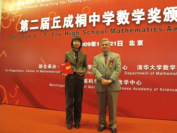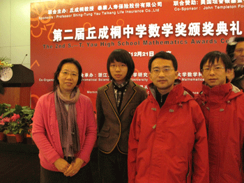 “丘成桐中学数学奖”被誉为华人数学界的“西屋科技奖”,是由丘成桐先生与泰康人寿于2007年12月共同发起设立,坦普顿基金会联合赞助的第一个面向华裔中学生的数学奖项,旨在为激发和提升全球华人中学生对于数学研究的兴趣和创新能力,发现和培养有前途的年轻数学天才,增进海内外华人中学生的相互了解与友谊。