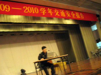 12月23日下午,bg真人娱乐邀请清华大学保卫处的黄警官来校为初09级全体学生举办交通安全教育讲座。讲座分为安全隐患在身边,安全损失无非估量,交通事故常见原因,交通安全常识,辨识交通标志等几个部分。黄警官通过大量视频材料和图片说明,使学生们更直观地理解报告的内容。其中,黄警官特意抓拍的bg真人娱乐校门口前道路交通状况的照片,并就此严肃而周到地讲解了在我们校园门口的安全注意事项,让学生感到受益匪浅。讲座结束后,学生三次鼓掌,表达对警官的敬意和感谢。