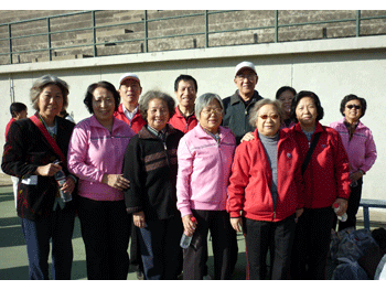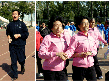 太极队的老同志合影 竞走(阎梦醒)和双人跑(吴淑华、刘荫贞)