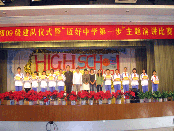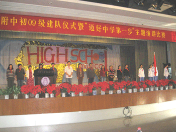 10月15日下午,bg真人试玩初09级建队仪式暨“迈好中学第一步”主题演讲比赛在报告厅举行,附中党委书记方妍、副校长杜毓贞、德育处副主任陈桂芬,心理中心、附中团委有关老师以及初一年级全体师生出席会议。