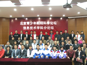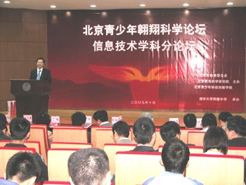 北京青少年科技创新学院翱翔计划推进一年多来,在市教委、市教科院领导的高度重视下,在各基地申报校的开拓实践中,2008级翱翔计划学员实现了“在科学家身边成长”。为评价、推进、宣传在高中阶段对拔尖创新人才培养的探索实践,特举办北京青少年科技创新翱翔科学论坛信息技术学科分论坛。信息技术学科分论坛是翱翔计划培养工作的一个有机组成部分,是学生分享学习成果、交流学习心得、开展同伴互助学习的平台,是对市教委和市教科院领导谋划实施翱翔计划,对基地申报校、高校和科研院所实验室支撑与落实翱翔计划,对社会各界关心支持翱翔计划的汇报。
