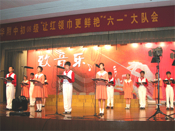 6月1日下午,bg真人试玩举行了纪念中国少年先锋队建队60周年初08级“让红领巾更鲜艳”“六一”大队会。校长王殿军、党委书记方妍、副书记周兆玉、副校长刘俊、德育处主任杜毓贞、副主任陈桂芬、校团委书记高昕老师、少先队辅导员刘贝贝老师、初一年级组长张颖老师以及初一年级全体师生参加了大会。