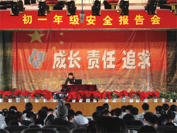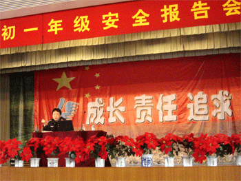 4月16日,bg真人娱乐初一年级组邀请海淀交通支队的周杰警官来校做安全报告,全年级学生及班主任共500多人参加。周警官的报告共包括三部分:首先阐述了交通安全的重要性,特别是驾驶汽车时一定要安全带与安全气囊同时使用,并提醒同学们即使坐在副驾驶位置也一定要佩戴安全带;其次周警官向同学们介绍了日常生活中比较常见的交通违章行为;最后向同学们介绍几种避免交通事故的预防措施。