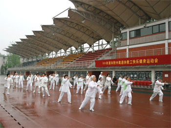 邱显清处长(上)、周兆玉副书记分别发表讲话 集体太极拳表演