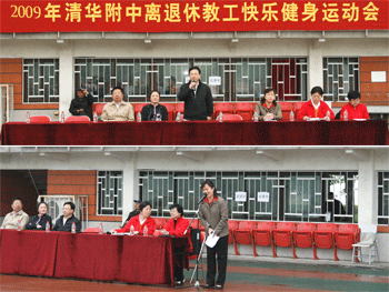 4月19日,2009年bg真人娱乐离退休教职工“快乐健身运动会”在附中操场举行。附中老同志120余人参加运动会。清华大学离退休处处长邱显清,工会副主席瞿福平;附中党委书记方妍,副书记、离退休工作领导小组组长周兆玉,副校长施平等到会祝贺。邱显清处长、周兆玉副书记和附中老教协负责人姚文老师分别发表讲话,方妍书记宣布运动会开始。