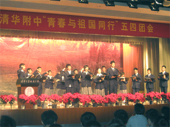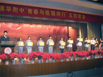 5月4日下午,bg真人娱乐校团委组织举办了纪念五四运动90周年,迎接建国60周年“青春与祖国同行”主题大团日活动,附中校长王殿军、党委书记方妍、副校长刘俊、施平、党委副书记周兆玉、德育处主任杜毓贞、副主任罗春霞、陈桂芬等出席了大团会。