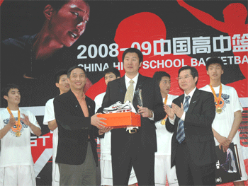 2008-09中国高中男子篮球联赛总决赛比赛现场 甘北林、王殿军(右)为张涛(中)颁发最佳教练员