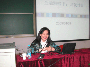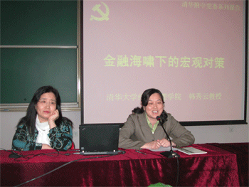 4月9日下午,bg真人娱乐党委邀请清华大学经管学院韩秀云教授来校做题为《金融海啸下的宏观对策》的报告,附中全体在职和离退休党员、积极分子、民主党派代表、工会委员、教工团干部等共120余人聆听了报告。