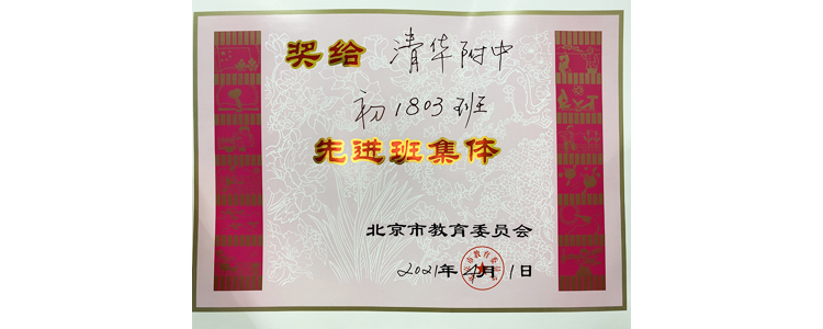 2021年4月,北京市及海淀区优秀班集体评选结果公布,bg真人试玩初1803班、高1812班获得“北京市优秀班集体”荣誉称号;初1805班、高1802班获得“海淀区优秀班集体”荣誉称号。