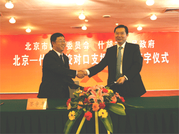 “北京-什邡学校对口支援与合作代表团”由北京市教委主任刘利民率领,市教委有关部门、直属直管单位、有关高等院校及附中领导等31人参加,目的是落实《北京市对口支援什邡市灾后恢复重建智力援助方案》中有关智力援助项目。该援助项目的主要内容是,在今后两年中,北京市教委将投资1200余万元,从“‘手拉手’结对共建”、“专家教师支教”、“建设远程教育教师培训平台”和“管理干部、教师培训”4个方面,对什邡教育进行援助。