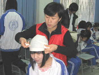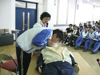 红十字会老师用许多生动的事例,丰富的语言,深入浅出的将急救知识、急救的基本技能教授给师生们。师生们学习热情非常高,认真听讲,积极跟随培训老师学习心肺复苏技术、各种止血包扎方法,395名学员全部顺利通过了理论和实践两方面考试,他们将拿到北京市下发的初级急救员证书。