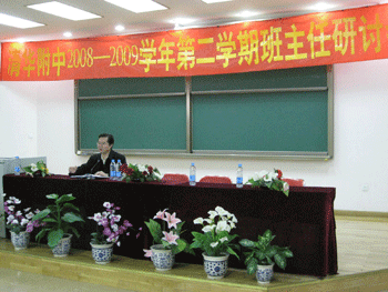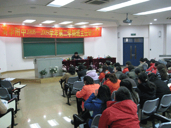 2月21日,bg真人娱乐召开2008-2009学年度第二学期班主任工作研讨会,学校有关领导,非毕业年级的年级组长、班主任,35岁以下青年教师及德育处相关老师共80余人参加会议。会议由德育处副主任陈桂芬主持。