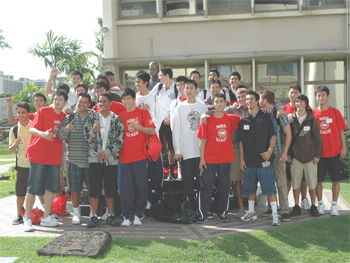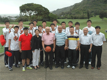bg真人娱乐队员与夏威夷大学男篮队员合影 bg真人娱乐队员与Iolani中学学生合影