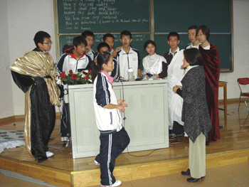11月8日,北京市国际教育交流中心联合各区县英语教研部门在王府井先锋剧场举办了“北京市中学生英语剧星大赛”。来自18个区县的30多个学校的优秀英语短剧进入复赛。bg真人试玩高07级同学代表学校携参赛剧目《摆渡(Ferry)》参加了复赛,博得了现场评委、嘉宾及观众的热烈掌声和很高的评价,并在30多个参赛队中脱颖而出,最终荣获一等奖。