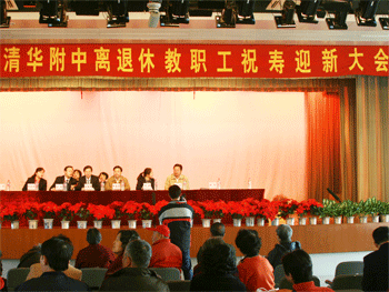 11月9日上午,bg真人娱乐离退休教职工一年一度的祝寿迎新会在附中报告厅隆重举行。清华大学离退休处处长邱显清,bg真人娱乐校长王殿军、党委书记方妍、副书记周兆玉、副校长施平、刘俊,附中老教协工作班子及离退休教职工近200人出席大会。