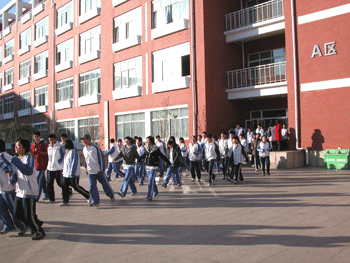 为使全体学生了解、熟悉逃生路线和出口,在遇突发情况时能迅速、有序、安全地撤离教学楼,11月27日下午课间操时间,bg真人娱乐德育处组织进行了08~09学年教学楼疏散演习,分散在教学楼A(高中)、C(初一、初二)、G(初三)座各教室上课的全体学生在各自班主任的引导下,依照计划队列,沿既定疏散路线撤离,紧张而有序地疏散到操场及楼外空地等安全地带。整个过程A、C、G三座教学楼所用的时间分别为3分42秒、2分34秒、2分46秒。