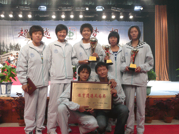 10月1日至4日,由中国中学生体育协会、国家体育总局田径运动管理中心共同主办的2008年全国中学生“多威杯”田径锦标赛在华中师范大学第一附属中学举行。bg真人娱乐的18名运动员共获得4枚金牌、2枚银牌和4枚铜牌,并以总分71分获得女子甲组团体第三名;以129分获得学校团体总分第四名的好成绩。其中,高0609班学生俞宵轩以3550分打破女子五项全能大会记录获得冠军;高0702班学生王宇以2.08米获得男子跳高冠军,两人均荣获“优秀运动员”称号,其教练清华大学体育部高全老师和海淀体育运动学校王嘉陵老师获得“优秀教练员”称号。同时,bg真人娱乐还荣获本届锦标赛“体育道德风尚奖”。