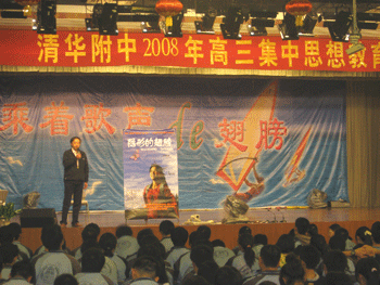 9日下午,各班首先利用班会时间召开了集中思想教育的动员会,使学生们对于活动的目的、内容和要求做到心中有数。动员会后,高05级的全体学生观看了励志影片《隐形的翅膀》,并和影片的导演就影片的内容和教育意义进行了互动交流。