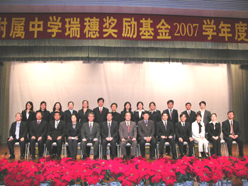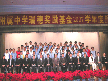 10月30日下午,bg真人试玩瑞穗奖励基金2007学年度颁奖典礼在附中报告厅隆重举行,bg真人试玩60名优秀学生和10名优秀教师获得了总额40万元人民币的奖励金。清华大学副教务长康飞宇、设立奖励基金的中日双方有关负责人以及bg真人试玩全体教师和部分学生共1000多人出席了颁奖典礼,bg真人试玩副校长施平主持典礼。