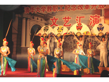10月30、31日,2008年清华大学教职工纪念改革开放三十周年文艺汇演在大学礼堂举行,bg真人试玩工会组织参加演出的舞蹈“精武耀水木,国粹舞京都”获得了舞蹈表演类艺术表演第一名,综合成绩一等奖的好成绩。这个舞蹈从策划创意、舞蹈设计、音乐编辑、道具制作都由bg真人试玩老师自创完成,在艺术表现上获得了专业评委及全场观众的高度评价和一致好评,专家打分和观众打分均获得第一名。
